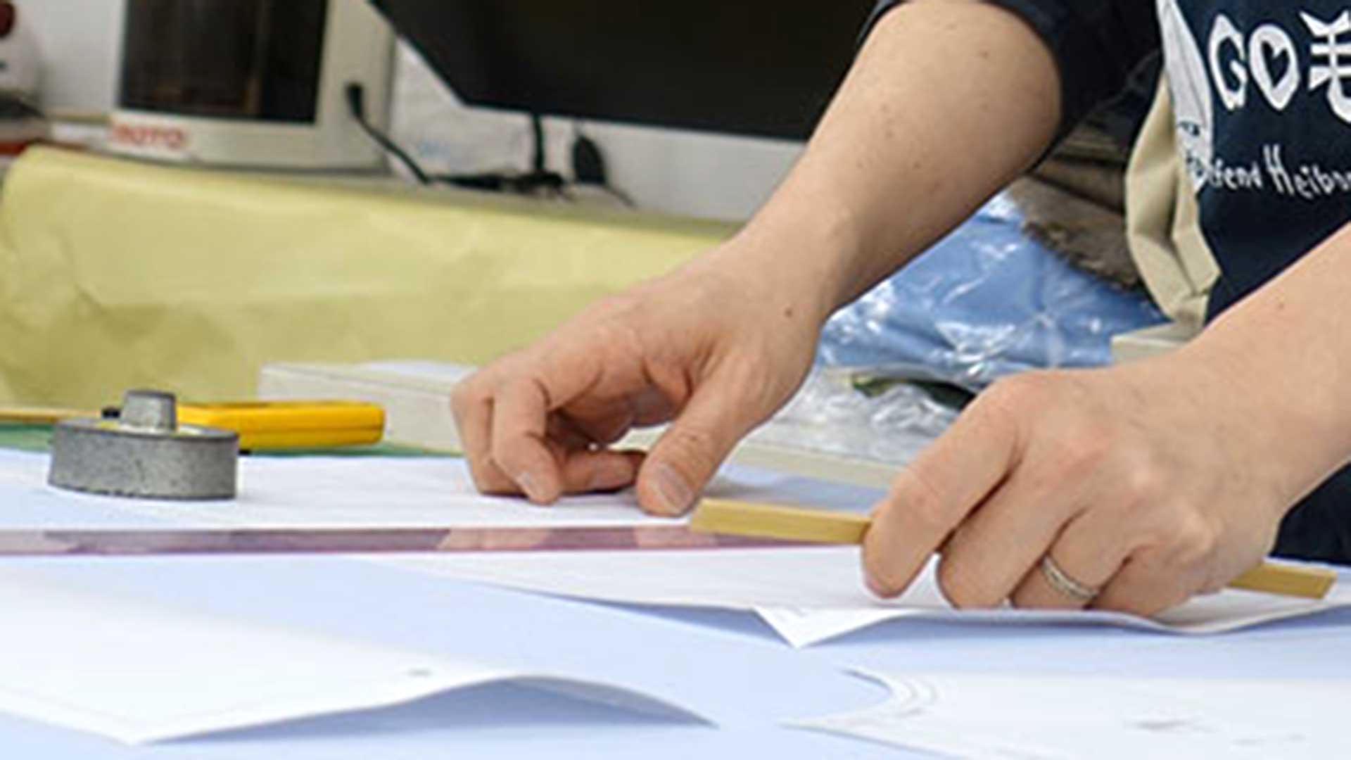社内外に長年経験を培ってきたパターンメーカーを内製化、または協業しており、さまざまな要望に応えるパターンを作成しています。スポーツ・アウトドアブランドからコレクション・ライセンスブランドまで多様な生産背景を持っているため、それぞれのノウハウを活かしたパターン、カッティングをご提案いたします。
